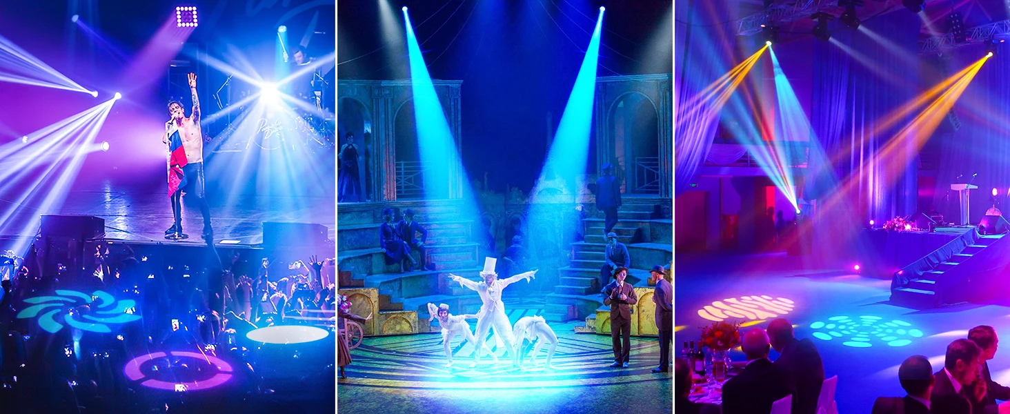 Perfect stage DJ lighting, small size with rich color effects and variety functions, which can easily meet for different kind of occasions, perfect stage lighting for stage, show, disco, party, wedding, club etc.